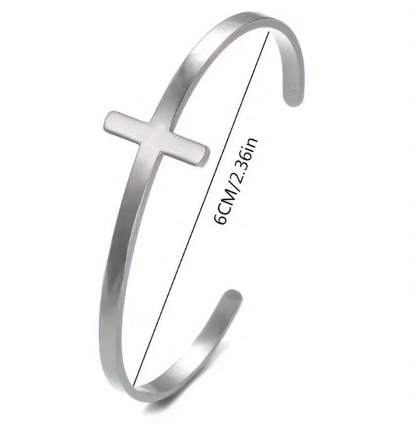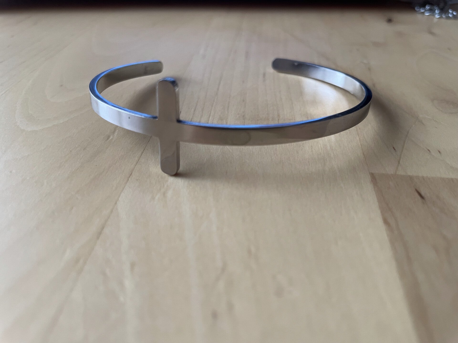 Jonc en Acier inoxydable avec une croix, personnalisable.